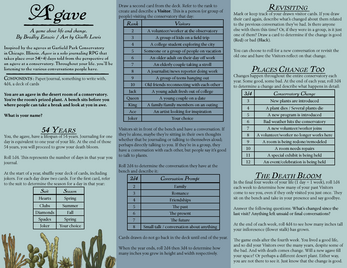You are an agave in the desert room of a conservatory. Some Visitors will take the time to stop by the bench in front of the area you're planted with and have a conversation with themselves or other people and you'll listen.